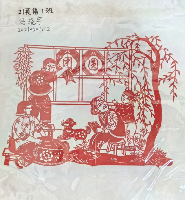 本次活动围绕传统艺术形式——剪纸展开,包括刻纸、拼贴等纸艺形式,给予了参赛者更广泛的创作空间。活动期间,同学们自行了解剪纸的历史文化背景,设计了各具特色的作品图,通过形象生动的图案描绘内心的世界,叙述独特的故事。一份剪纸一片情,张张彩纸,裁剪镂刻,创造出生机盎然的游春图、栩栩如生的立体玫瑰和蝴蝶......文化元素与剪纸艺术巧妙融合,既富有传统文化魅力,又兼具新时代特色。全部作品完成后,同学们主动分享自己的巧思妙想,气氛热烈,不仅锻炼了动手能力,更在快乐剪纸中释放了心理压力。