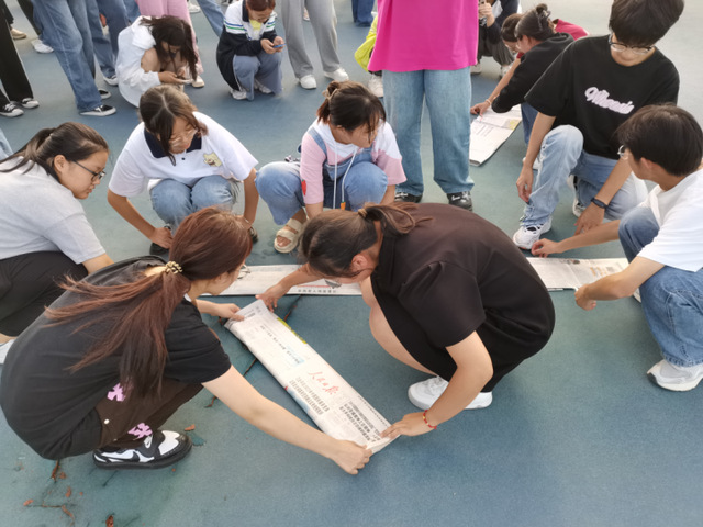 本次心理团辅由“硬币组合”、“铁砂掌和一阳指”、“珠行万里”、“无敌风火轮”四个活动组成。在心理站和班级助理的带领下,四项活动有序开展。其中,轻松有趣的“硬币组合”极大地调动了同学们的参与热情,整个操场充满了欢声笑语。在“铁砂掌和一阳指”中,同学们锻炼了反应速度和协调性,同时享受到了团队互动的乐趣。 “珠行万里”这一活动要求员工四人一组背对背坐下,在不用手辅助的情况下站立起来。随着人数的逐步增加,难度也不断加大,同学们需要不断地调整他们的协作方式,因为在这个任务中,团队合作、沟通能力是成功的关键。最后一个活动是“无敌风火轮”,这个活动要求参与者以班级为单位,在规定的路程内移动一个特制的履带式装置,走完规定的路程后到达终点。这个活动要求同学们充分协作,共同动手制作履带,既快又稳地走出最佳路线,在最短时间内完成任务。