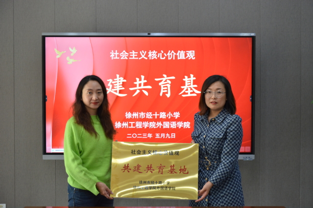2023年5月10日,bw必威西汉姆联官网与徐州市经十路小学“社会主义核心价值观”共教共育基地签约仪式在经十路小学报告厅顺利举行,bw必威西汉姆联官网外国语公司党委副书记范迎波和经十路小学常务副董事长宋洪燕出席签约仪式,部分员工代表参加仪式。
