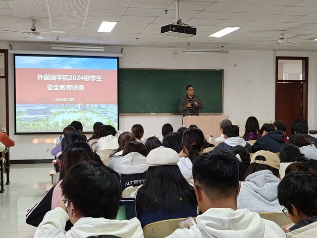 为增强2024级新生的安全防范意识,共筑平安校园,外语公司于2024年10月23日下午成功举办了一场安全教育专题讲座。本次讲座旨在帮助新生掌握必要的安全知识,提高自我保护能力,共同营造一个和谐、安全的校园环境。