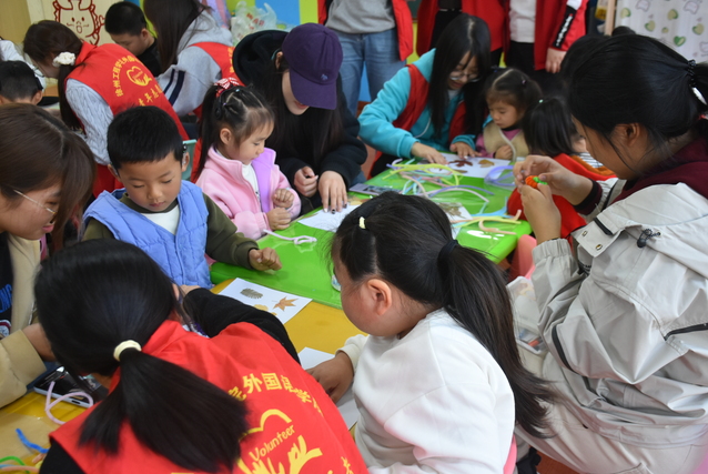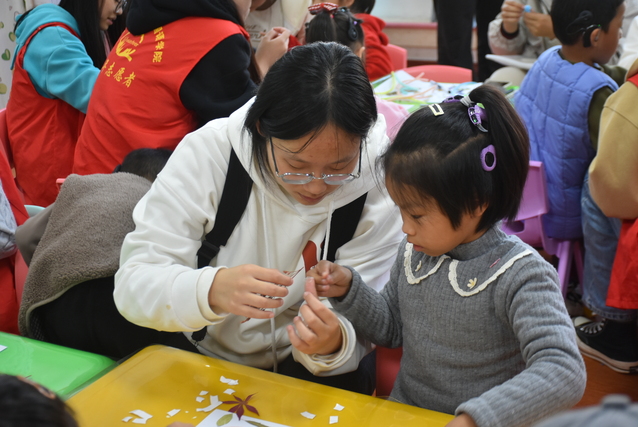 活动当天,志愿者们早早抵达康复中心,用心布置活动场地。他们带来了各种手工材料,准备和小朋友们一起制作秋天主题的手工作品。小朋友们看到志愿者们的到来,脸上绽放着腼腆的笑容。在志愿者的耐心指导下,小朋友们放飞想象,用彩色纸张、画笔、干树叶干花等材料,创作出一幅幅美丽的秋天画卷。画卷上有金黄的树叶、红彤彤的苹果、可爱的小动物等,每一幅都洋溢着童真与创意。志愿者们一边协助小朋友们完成作品,一边轻声讲述秋天的故事,加深小朋友们对秋天的了解和喜爱。活动现场充满了欢声笑语,气氛温馨而热烈。